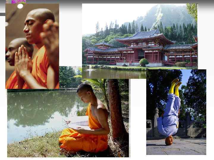 Учение Будды • Всё есть страдание в этом мире • Причина страданий - наши желания • Прекратить страдания можно только освобождением от желаний • Для этого необходимо пройти особый духовный путь очищения, осознанности, медитации и достичь нирваны - высшего блаженства