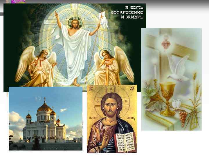 Элементы религии легенды, сказания, откровения, ад, рай, нирвана • Религиозные представления любовь к Богу, страх перед злыми духами… • Религиозные настроения молитва, проповедь, таинство, медитация • Религиозные действия церковь, мечеть, секта, монастырь • Религиозные организации и институты