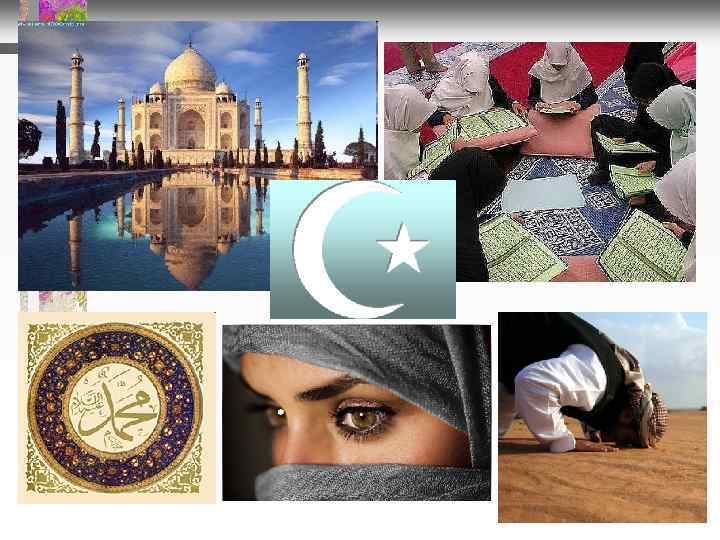 Учение Магомета • Коран - слово Божье, слово Аллаха, которому необходимо полностью повиноваться (т. е. следовать предписаниям Корана) • Ислам - «повиновение» , мусульманин - «покорный» • Предписания - вера в единого бог Аллаха, молитва 5 раз в день, пост, милостыня, паломничество в Мекку (хадж), борьба с неверными (джихад) • Когда Бог решит, что время пришло, Вселенная будет разрушена, наступит Страшный Суд и спасутся от ада истинно верующие, живущие по законам Корана • Шариат - закрепление религиозных норм Корана в законах мусульманских стран
