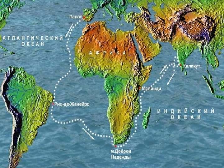 Обогнув мыс Доброй Надежды, флотилия вошла в Индийский океан, и продолж север вдоль берегов. Вскоре грузовое судно из-за непригодности к плаванию Дойдя до Мозамбика, встали на якорь, но вспыхнувшая ссора между португа арабами заставила поторопиться с отходом. Через месяц подошли к Момбасе оттуда пришлось вскоре бежать. На рассвете 20 мая 1498 года показался Каликут. Отныне имя Васко Гама, первого европейца, прошедшего морем от Португа да Индию, стало известно всему миру. Он доказал, что моря вокруг Индийского не были внутренними, как считали в то время многие ученые, и нанес на кар правильные очертания африканского материка и Индии.