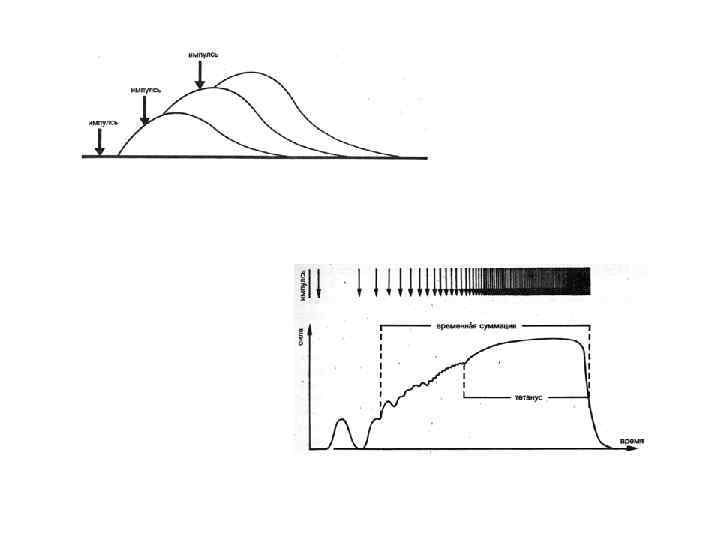 ФАКТОРЫ, ВЛИЯЮЩИЕ НА СИЛУ МЫШЕЧНОГО СОКРАЩЕНИЯ 1. Частота стимуляции – увеличение частоты стимуляции приводит к увеличению силы сокращения вследствие временной суммации; 2. Число вовлеченных двигательных единиц – стимуляция большего количества ДЕ приводит к большей силе мышечного сокращения; 3. Исходная длина мышцы – оптимальное растяжение обеспечивает возможность появления максимального количества мостиков между актином и миозином, что определяет максимальную силу сокращения. Недостаточное или избыточное растяжение мышцы приводит к снижению силы сокращения.