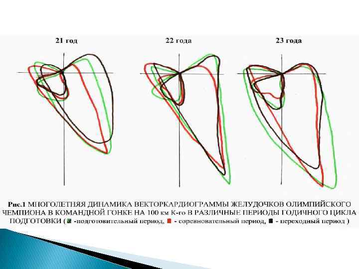 Стабилизация площади петли QRS ("застывшая" петля). Несмотря на изменения характера и направленности тренировочного процесса в динамике годичного цикла подготовки у спортсменов регистрируется почти неизмененная графика желудочковой петли Такая разновидность векторкардиограммы встречалась как у молодых спортсменов, так и у спортсменов с большим спортивным стажем.