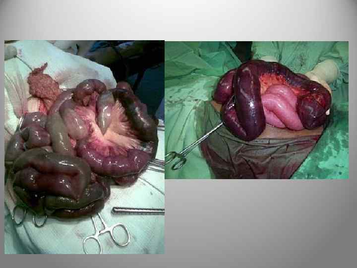 Ішемічна хвороба кишечника • Ішемічна хвороба кишечника - захворювання, що виявляється різними формами ішемії, коли уражений сегмент кишки отримує крові менше, ніж необхідно для підтримки його структури і функції. • Морфологічно визначається як гангрена кишки, інфаркт, геморагічний некроз, некротизуючий ентероколіт, ішемічний коліт. • Основні причини : артеріальні атеросклероз, тромбоз, емболія, заворот кишок, інвагінація, защемлена грижа, пухлинні ураження ( здавлення, інвазія). Оклюзії венозні