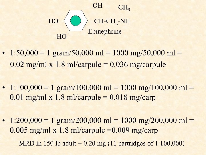Vasoconstrictor Concerns • • • Resting BP > 200/115 Myocardial infarction < 6 months Stroke < 6 months Coronary artery bypass < 6 months Unstable or daily episodes of angina Uncontrolled CHF or cardiac arrhythmias Uncontrolled hyperthyroidism Sulfite sensitive asthma or true allergy Certain Drugs: Cocaine, B-Blockers, TCAs