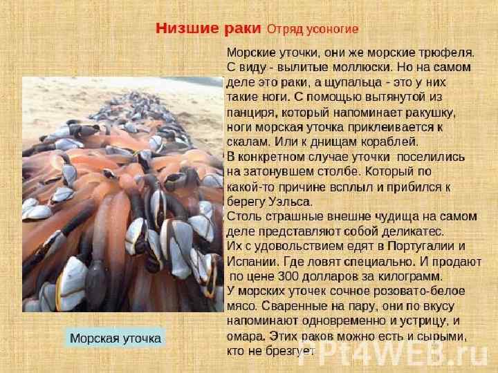 морских Родственники морских жёлудей тличаются наличием достаточно длинного стебелька, которым животное субстрату прикрепляется к субстрату, более крупным размером известкового панциря (до 5 см) и более причудливой окраской.