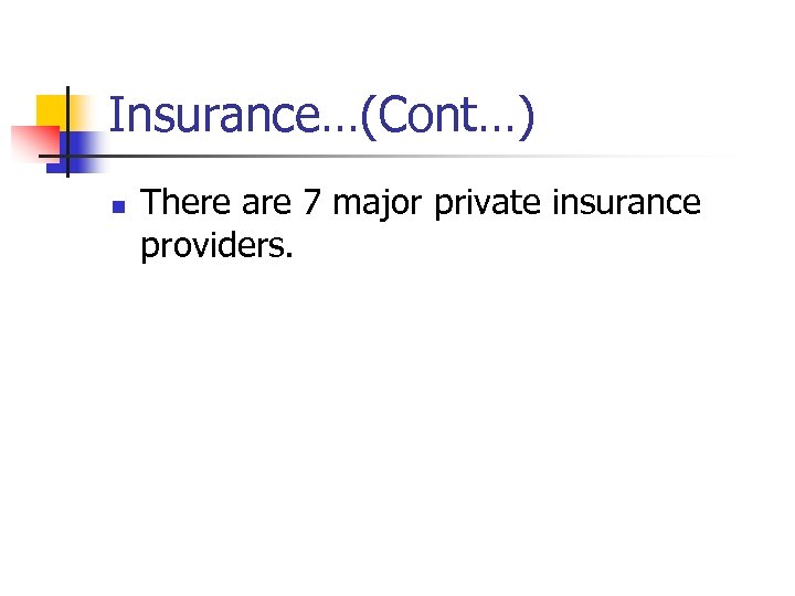 Insurance…(Cont…) n There are 7 major private insurance providers.