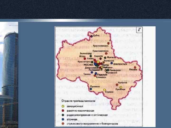 • В Москве и Московской агломерации городов сформировался научный, промышленно-транспортный узел. За время советской власти изменилась отраслевая и территориальная структура его экономики. Вместо преобладавших в «ситцевой» Москве легкой и пищевой промышленности ведущим стало машиностроение, в том числе оборонное. • В машиностроении столицы особая роль принадлежит аэрокосмическому комплексу, производству электротехнического оборудования, а также электронике, микроэлектронике и нано- технологиям, развивающимися в Зеленограде, который является одним из округов Москвы. • Заметную роль в промышленности города играют предприятия пищевой промышленности и полиграфии. Последние представлены типографиями, выпускающими более половины газет и книг, издаваемых в России. Типографии концентрируются в центре города.