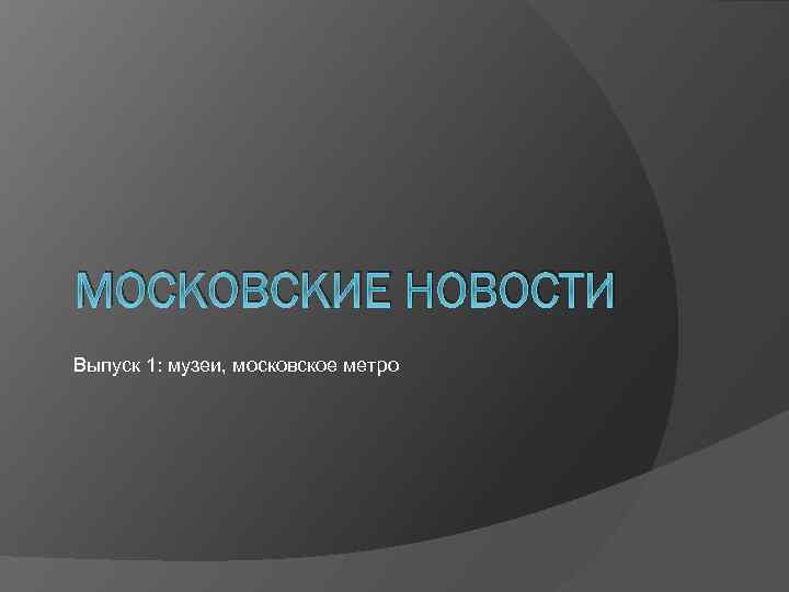 МОСКОВСКИЕ НОВОСТИ Выпуск 1: музеи, московское метро