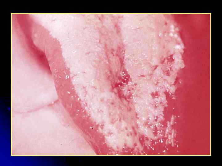 ЛЕГКАЯ СТЕПЕНЬ – налет снимается полностью ТЯЖЕЛАЯ СТЕПЕНЬ – налет удаляется с трудом, обнажается кровоточащая, эрозированная поверхность