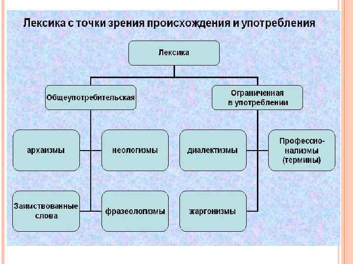 ЛЕКСИКА Совокупность слов того или иного языка, части языка или слов, которые знает тот или иной человек или группа людей. Лексика является центральной частью языка, именующей, формирующей и передающей знания о каких-либо объектах, явлениях.