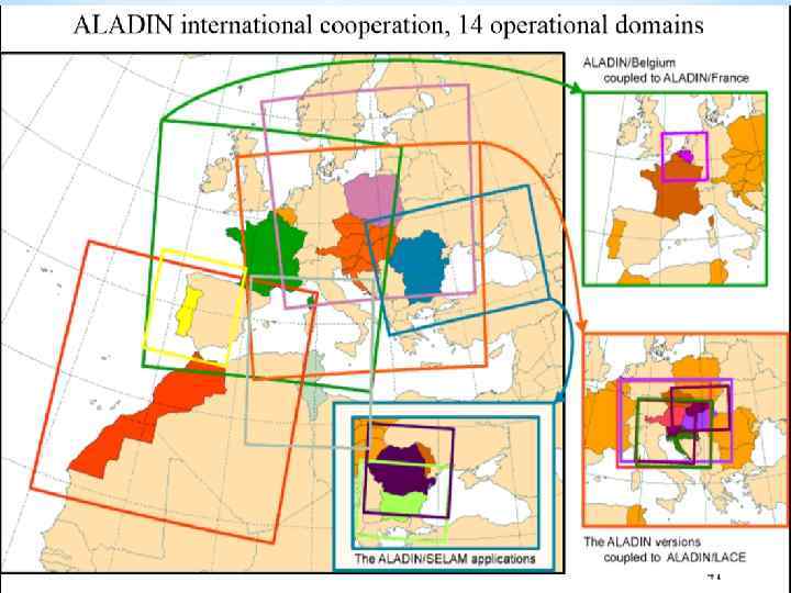 * SRNWP – Small-scale Regional Numerical Weather Prediction. Проекты мезомасштабного моделирования – HIRLAM, UKMO, COSMO и ALADIN создан одним из первых – в 1990 г. *AIRE LIMITÉE ADAPTATION DYNAMIQUE DÉVELOPPEMENT INTERNATIONAL *Limited Area Ensemble Forecasting