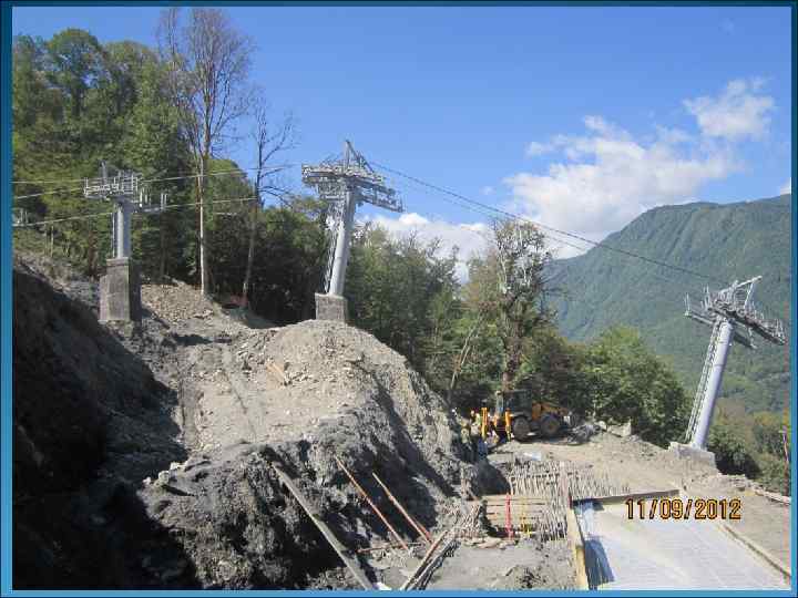 Объект строительства «Комплекс трамплинов» Основные здания и сооружения Комплекса: Трамплин К-95 (металлическая конструкция); Трамплин К-125 (металлическая конструкция); Зона выката с железобетонными цокольными помещениями; Стартовое здание (металлическая конструкция); Главные зрительские трибуны на 15 тыс. мест; Многоуровневая автостоянка (3 -х этажное железобетонное здание) Судейская вышка (металлическая конструкция); Главное сервисное 3 -х этажное здание; Подвесная канатно-кресельная дорога; Подъездная автодорога от зоны трибун к стартовому зданию. (металлическая конструкция); • Топографически площадка проектируемого строительства расположена на северном склоне хребта Аибга. • Административный адрес участка: Краснодарский край, г. Сочи, Адлерский район, п. Эсто-Садок. -