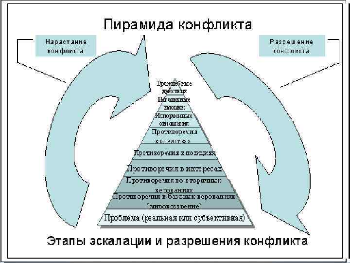 НЕГАТИВНОЕ ВОЗДЕЙСТВИЕ МЕЖДУНАРОДНЫХ КОНФЛИКТОВ 1. Конфликт представляет собой угрозу заявленным интересам сторон 2. Угрожает социальной системе, обеспечивающей равноправие и стабильность 3. Препятствует быстрому осуществлению перемен 4. Приводит к потере поддержки 5. Ставит людей и организации в зависимость от публичных заявлений, от которых невозможно легко и быстро отказаться 6. Вместо тщательно взвешенного ответа он ведет к быстрому действию