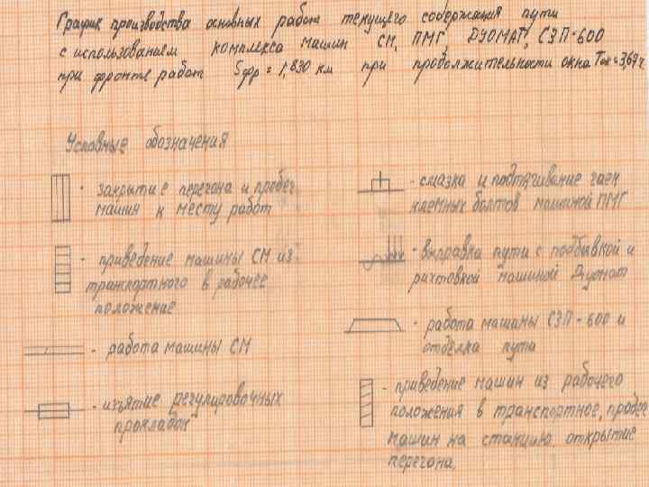 2. 1 Определение фронта планово предупредительных работ с использованием комплекса машин в составе СМ, ПМГ, ДУОМАТ, СЗП 600 при продолжительности окна Ток 3, 67 ч… 2. 2 Ведомость затрат труда на выполнение основных работ текущего содержания пути с использованием комплекса машин в составе: СМ, ПМГ, ДУОМАТИК, СЗП 600 при фронте работ Sфр=1, 830 км при продолжительности окна Ток=3, 67 ч……. . 2. 3 График производства основных работ текущего содержания пути с использованием комплекса машин в составе СМ, ПМГ, ДУОМАТ, СЗП 600 при фронте работ Sфр=1, 830 км при продолжительности окна Ток=3, 67 ч…