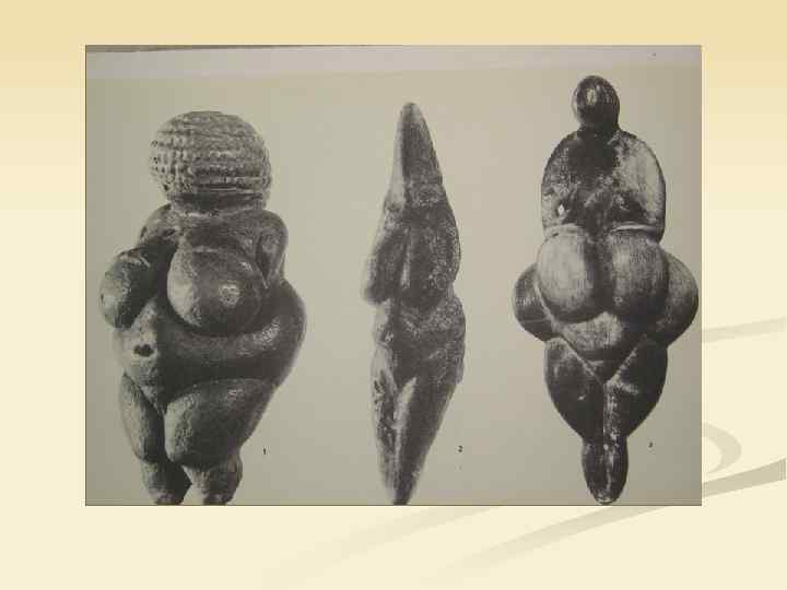 Некоторые находки Венер всемирно известны. Такова, например, Венера (ил. 1) из Виллендорфа (Австрия). Она представляет фигуру сильной, полной, зрелой женщины; голову ее художник украсил пышной прической (статуэтка изготовлена из мягкого известняка. Известна также Венера (ил. 2) из Севиньяно (Италия); статуэтка изготовлена из серпентина, высота ее 22, 5 сантиметра. Вершиной художественного мастерства является Венера из Лесшог во Францип (ил. 3): она вырезана из кости мамонта, высота ее 14, 7 сантиметра). Хотя ее тело обладает невероятно преувеличенными чертами, но имеет гармоничный облик и сделано с большим художественным вкусом. Вся ее фигура симметрична и образует правильный ромб. Небольшая голова переходит в узкую грудь, тело расширяется в сильные бока и вновь суживается к едва намеченным ногам. Действительно, это произведение большого мастера. Непроработанные руки и головы этих и других Венер, как и преувеличенные женские особенности, служат ясным доказательством того, что при их изготовлении не имели решающего значения понятия женской красоты и нежности более поздних исторических периодов. Женщина-родительница была уважаемым членом общества. Возникающее родовое общество вело свое начало от какой-то древней женщины-праматери и также ее почитало. Поэтому представляется более правдоподобным, что все статуэтки Венеры представляют собой предметы и символы культа, скорее всего, культа женщиныпрародительницы и, одновременно, культа плодородия.