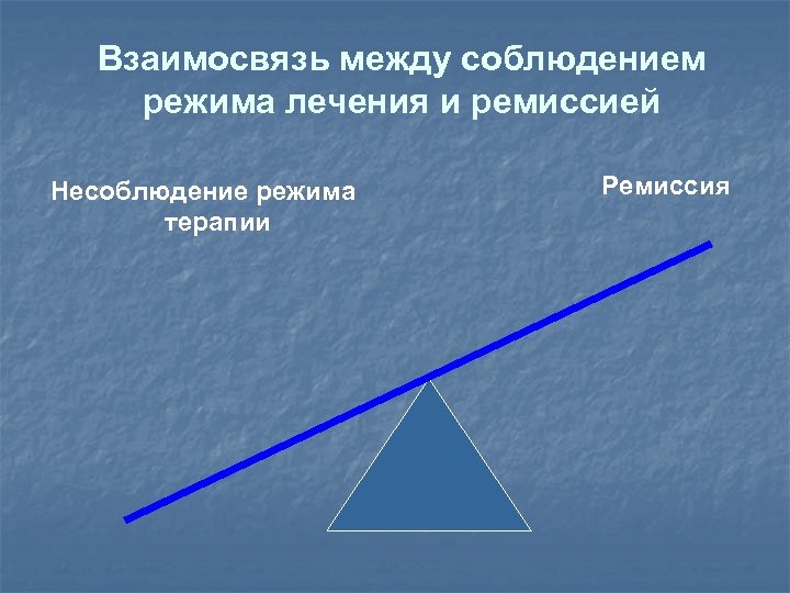 Взаимосвязь между соблюдением режима лечения и ремиссией Несоблюдение режима терапии Ремиссия