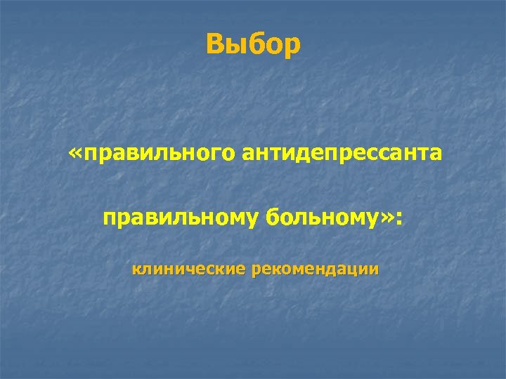 Выбор «правильного антидепрессанта правильному больному» : клинические рекомендации