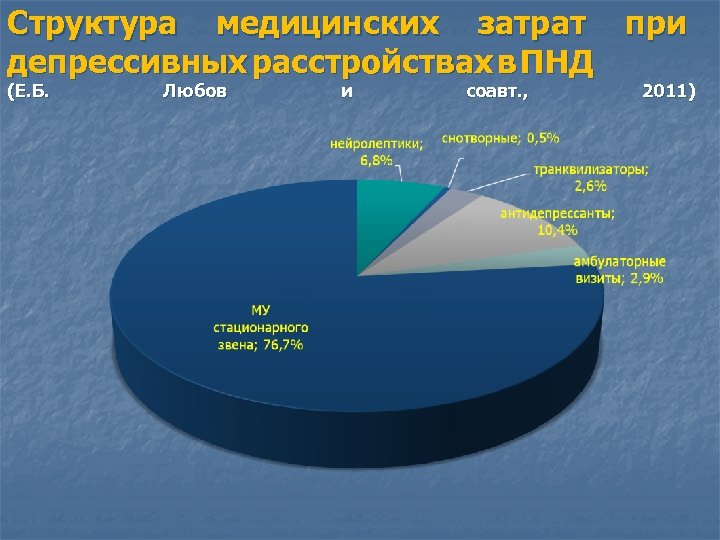Структура медицинских затрат при депрессивных расстройствах в ПНД (Е. Б. Любов и соавт. , 2011)