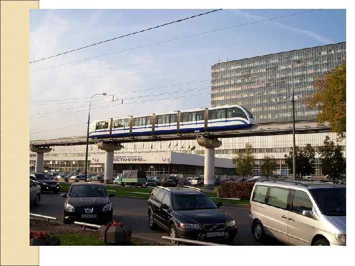 Монорельсовый транспорт В столице работает монорельсовая дорога, которая не относится непосредственно к системе Московского метрополитена Первая и на данный момент единственная линия Московской монорельсовой транспортной системы длиной 4, 7 км была построена в 2004 году. Она расположена в Северо-Восточном округе и проходит от станции метро «Тимирязевская» до улицы Сергея Эйзенштейна. В среднем монорельс перевозит 11, 2 тысяч пассажиров в день (по данным 2009 года)