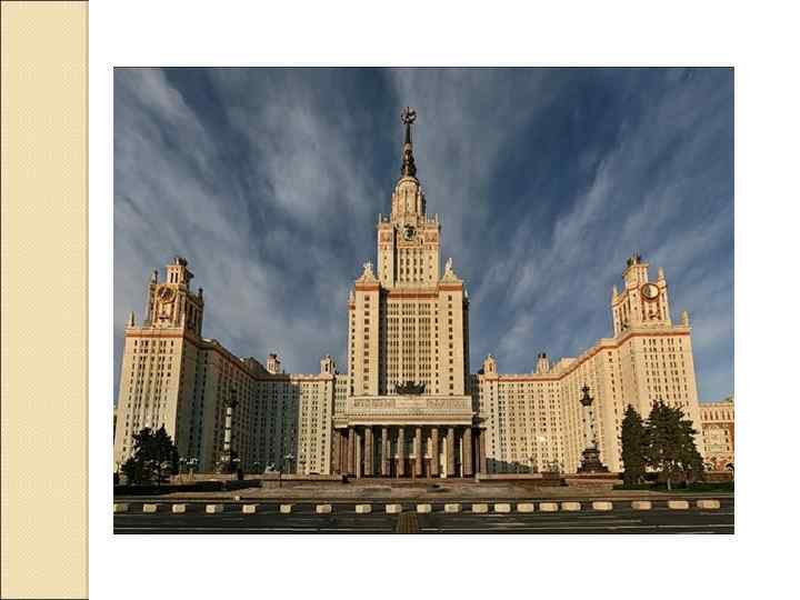 Основные этапы в историческом развитии города В 1952— 1957 гг было проведено строительство высотных зданий, впоследствии получивших название «Сталинских высоток» и ставших одним из символов Москвы советской эпохи. В 1980 г Москва принимала XXII летние Олимпийские игры. Начало 2000 -х ознаменовалось капитальным архитектурным преобразованием (Москва-сити)
