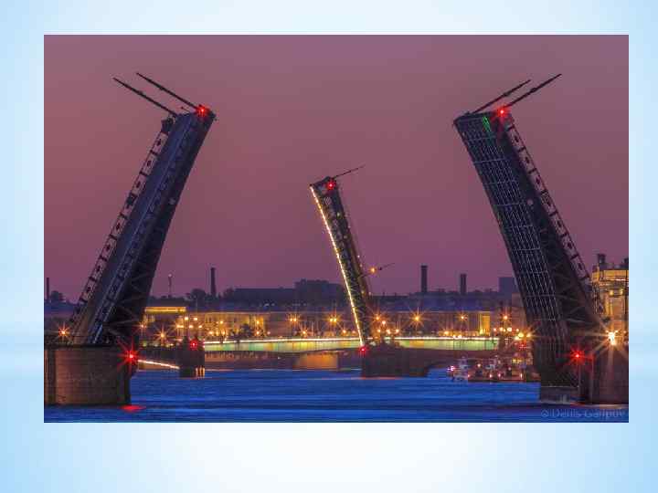 * Разведенный центральный пролет Дворцового моста — один из самых узнаваемых символов Санкт. Петербурга.