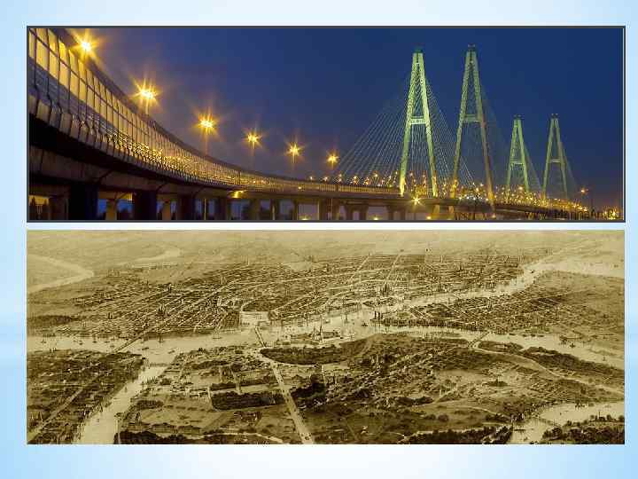 * Вантовый висячий мост построен в 2001 -2007 гг. , став частью Кольцевой автомобильной дороги, опоясывающей город. Название этого моста впервые в истории определялось в результате рейтингового голосования петербуржцев и жителей Ленинградской области. Часто используется название «Вантовый мост» .