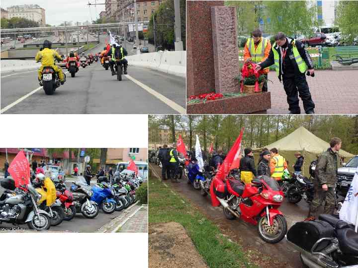 Массовые мероприятия Организация мотопробегов, слетов а также других массовых мероприятий с участием Клуба, работа со СМИ, взаимосвязь с другими клубами, информационное обеспечение. № 1 2 3 4 Описание Мотопробег, посвященный 70 -ой годовщине победы в Великой Отечественной войне. Маршрут пройдет по местам сражений и захоронений, где в годы ВОВ студенты и преподаватели МАДИ участвовали* в обороне Москвы. Одним из пунктов посещения станет музей техники Вадима Задорожного – крупнейший в России частный музей техники (ретроавтомобилей, мотоциклов и военной техники), расположенный близ усадьбы Архангельское в Красногорском районе Московской области. Продолжительность мероприятия – 1 день. Участие в «Моторах войны» - международный слет военной техники, где представлено более 120 действующих единиц военной техники: танков, автомобилей и мотоциклов из 16 -и стран-участниц Второй мировой войны. Проведение занятий по мотобезопасности со студентами МАДИ совместно с инспекторами мотобатальона ГАИ. Посещение контраварийных тренингов проводимых сотрудниками почетного мотоциклетного эскорта ФСО России на автодроме в Купавне. Сроки 5 – 8 мая 2015 г. 22 июня 2015 г. Июнь 2015 г. Апрель – июнь 2015 г.