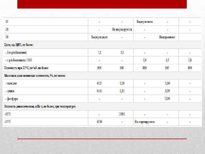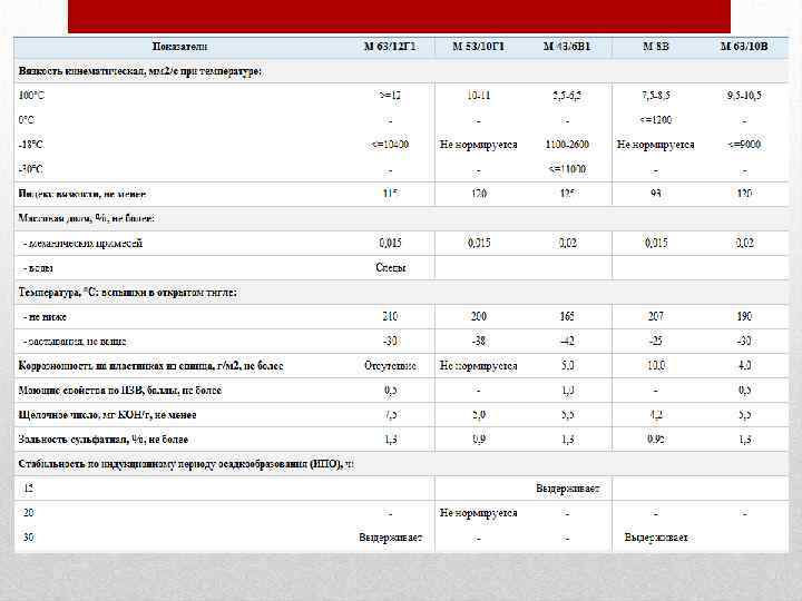 • Масло М-5 з/10 Г 1 (ГОСТ 10541 -78) готовят на базовом масле И-20 А. Используют в регионах с низкими температурами зимних месяцев как всесезонное. • Масло М-6 з/12 Г 1 (ГОСТ 10541 -78) готовят на основе смеси дистиллятных компонентов различной вязкости с добавлением присадок, обеспечивающих высокие противоизносные свойства. Применяют всесезонно в регионах с умеренными климатическими условиями при температуре воздуха от -20 до +45°С. • Масло М-4 з/6 В 1 (ГОСТ 10541 -78) получают загущением базового масла (веретенное АУ) полиметакрилатной присадкой и добавлением композиции моющих, антиокислительной и противопенной присадок. Применяют всесезонно в северной климатической зоне и в районах с умеренными климатическими условиями только как зимнее масло. Обеспечивает холодный пуск двигателя при -30°С.