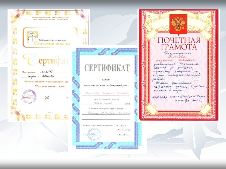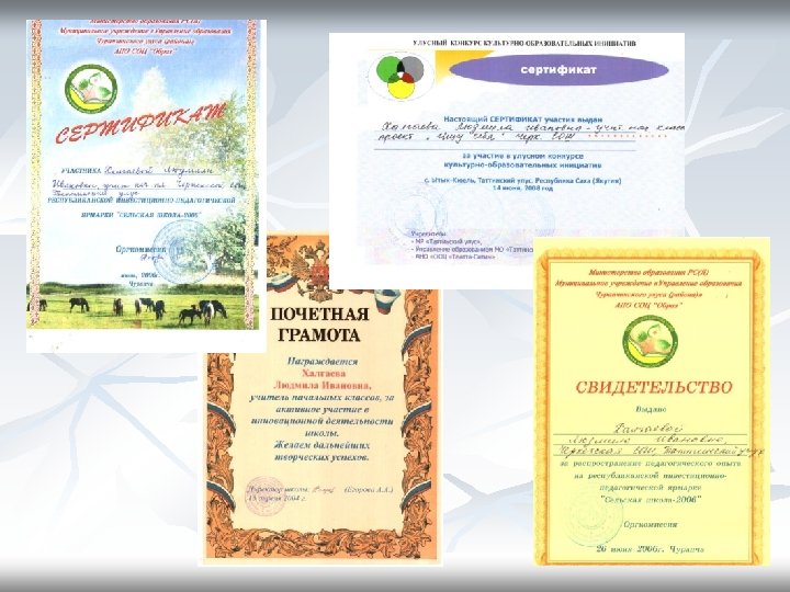 Участие в экспериментальной работе Уорэх сыллара Улэ темата Улэ тар5 аныыта «Ищу себя» проект-программа Óëóóñòàà±û ñåìèíàð, ïåä. èäåÿëàð ôåñòèâàëлара “Èñòîê - 2”, ðåñïóáëèêàíñêàé ñåìèíàð 2004 - 2005 Êýðèýí – Ó´óéóó òåõíîëîãèÿòûãàð îëî±óðáóò µ³ðýõ äüàðûãûí òýðèéèè Уруоктары тэрийии, улуустаа 5 ы семинар 2005 -2006 Уорэх дьарыгын айыл 5 а уратытыгар соп тубэьиннэрэн тэрийии «Педагогическая ярмарка сельских школ» Уруок расписаниетыгар киллэрии 2006 -2007 Алын кылаас о 5 олоругар уорэх дьарыгын тэрийии «Ищу себя» Улусный семинар по РО 2003 - 2004 2007 -2008 Алын кылаас о 5 олоругар уорэх дьарыгын тэрийии «Ищу себя» Улусный семинар по РО Эльконина. Давыдова 2008 -2009 Программа «Маленький мастер» Выставка, отчет