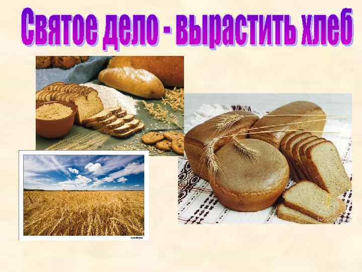 • Земля - матушка, а хлеб – батюшка. • Каравай хлеба не свалится с неба. • Пот на спине, так и хлеб на столе.