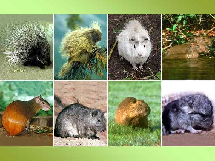Дикообразные Семейства дикобразовые, древесные дикобразы, свинковые, водосвинковые, пакарановые, агутиевые, шиншилловые, крысиные шиншиллы, колючие шиншиллы, нутриевые, восьмизубые, гребнемышиные, тростниковые крысы, скальные крысы, землекоповые, гребнепалые, гоферовые и др.
