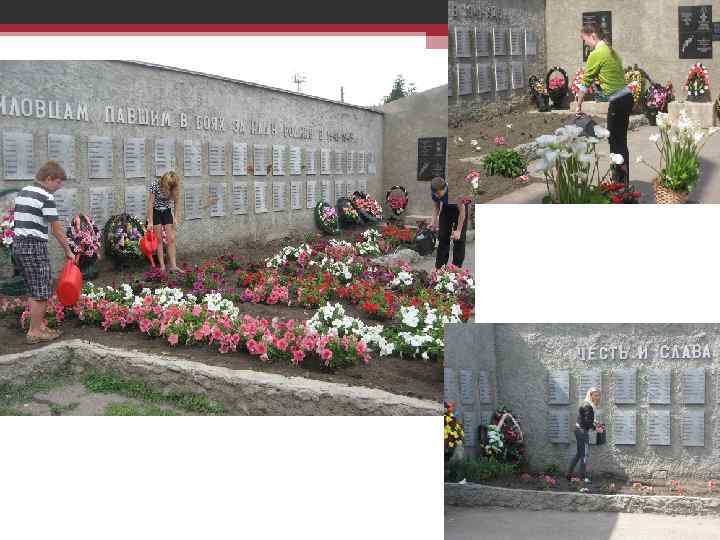 Распределение обязанностей. Дежина Мария – 9 «А» класс • 1. Подготовительная работа ( уборка территории у Вечного огня, подготовка участка для посадки цветов). • 2. Посадка и уход за цветами (необходимый полив, прополка цветника).