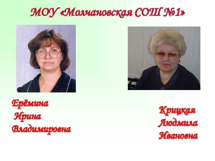 МОУ «Молчановская СОШ № 1» Ерёмина Ирина Владимировна Крицкая Людмила Ивановна