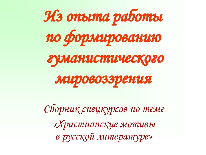 Из опыта работы по формированию гуманистического мировоззрения Сборник спецкурсов по теме «Христианские мотивы в русской литературе»