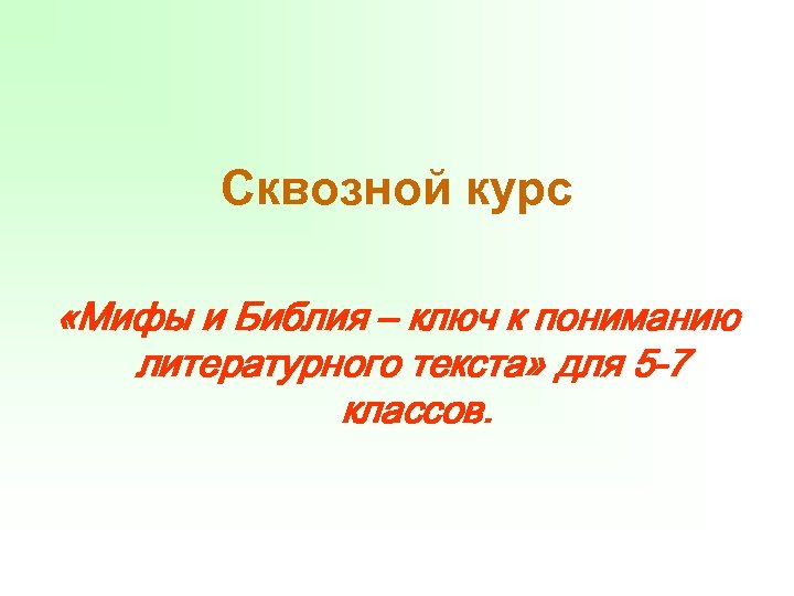 Сквозной курс «Мифы и Библия – ключ к пониманию литературного текста» для 5 -7 классов.