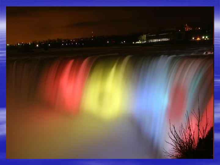 At Niagara installed dozens of multi-colored spotlights a total capacity of 1. 5 million k. W. Once it gets dark, their beams are directed to a continuously moving wall and waterfall, creating afantastic illumination, enhance an already impressive new