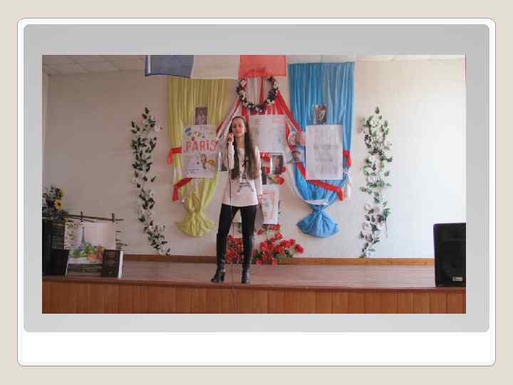 СВЯТО ФРАНКОФОНІЇ З 11 по 20 березня в Україні відбувається свято Франкофонії. Також це свято було проведено в Клішковецькій гімназії. 17 березня 2015 року було проведено відкритий урок у 9 класі на тему: «Подорож по Франції» . На виховному заході гімназисти читали поезії французькою мовою, звучали пісні у виконанні виданих французьких співаків, продемонстрували французьку моду, також незабутньою стала подорож виданими місцями Франції. На завершення свята прозвучала пісня «Comme toi» у виконанні вчителя французької мови Носатої Ю. О. Таке свято ще раз переконало, що Франція це країна елегантності, і провівши його, ми вшановуємо французьку мову й цінності солідарності та діалогу культур, які вона в собі несе.