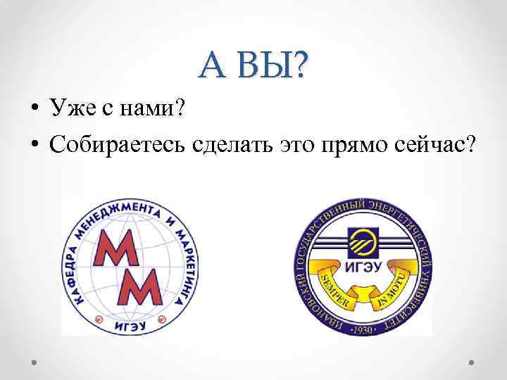 А ВЫ? • Уже с нами? • Собираетесь сделать это прямо сейчас?