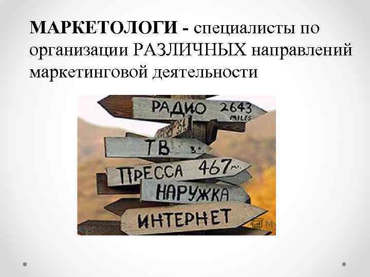 МАРКЕТОЛОГИ - специалисты по организации РАЗЛИЧНЫХ направлений маркетинговой деятельности