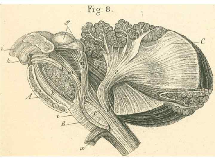 • Мозжечок состоит из филогенетически более древней части — (paleocerebellum и archicerebellum) и новой части (neocerebellum) полушарий, развивающихся параллельно с корой большого мозга.