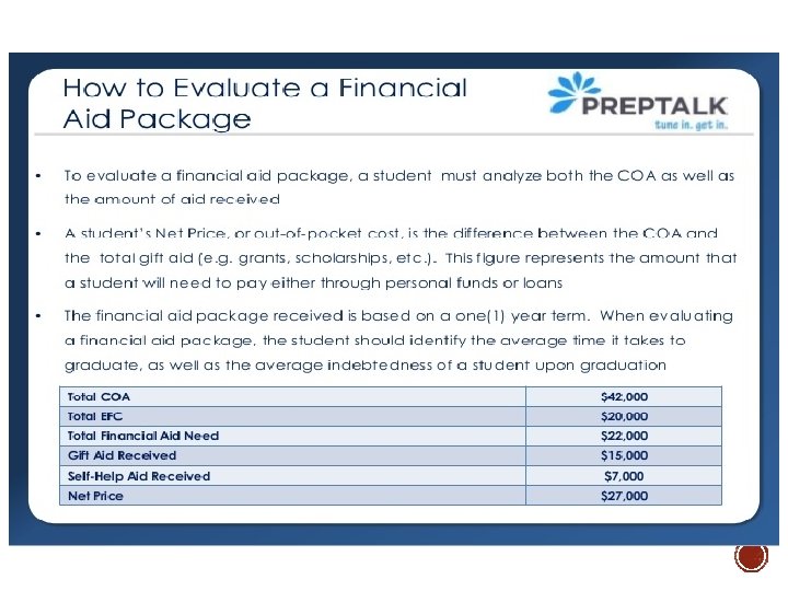 § What is financial aid? § Difference between scholarships and need based aid. § Types of Federal and State Financial Aid § How do I apply? § What happens next? § Understanding college award letters § Where can I get more info?