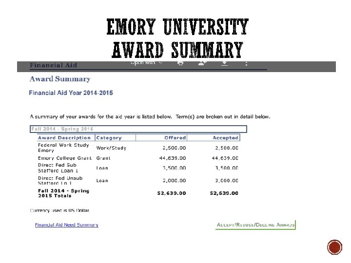 2015 -2016 Award Amounts (Grants) n Federal Pell Grant: up to $5, 730 n Federal Supplemental Educational Opportunity Grant (SEOG): $100 - $4, 000 Federal Work-study § A job: Admissions office, Library, for a Professor, the Gym, Stringing Tennis Rackets § You will be paid by check for your work § Flexibility for vacations, summer, and tests.