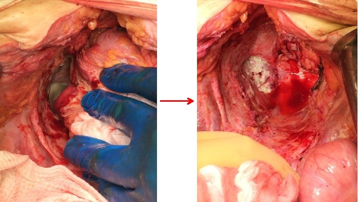 МРНЦ ИМ. А. Ф. Цыба - Филиал ФГБУ «НМИЦ радиологии» Минздрава России Пациентка: М. , 1978 г. р. В (III) отр. Основной диагноз: С 53 Рак шейки матки T 2 b. N 0 M 0. (ХЛТ СОД т. А 85 гр. т. В-62 Гр) II ст. 3 клиническая группа. Осложнение лечения: Внутритазовый лучевой фиброз. Поздний лучевой ректит 4 ст. Прямокишечновлагалищный свищ. Колостомия. Жалобы: на боли в области малого таза, некротические выделения и кровотечение из просвета влагалища. Анамнез: В 2015 году выполнена биопсия шейки матки, выскабливание цервикального канала. Гистологическое заключение: Инвазивный плоскоклеточный неороговевающий рак. С 08. 10. 15 по 27. 11. 15 проведена СЛТ на фоне радиомодификации цисплатином СОД т. А=85 Гр, т. В – 62 Гр. С 2016 года у пациентки появились явления лучевого ректита, неоднократно получала консервативную терапию по месту жительства без значимого эффекта. В связи с неэффективностью консервативных мероприятий 22. 16 пациентке выполнена колостомия. В течение последнего месяца пациентка отметила появление выделений из влагалища. Ректороманоскопия: Постлучевая язва нижнеампулярного отдела прямой кишки (на 5 см от зубчатой линии), до 1 см диаметром, при исследовании воздух выходит через влагалище. МРТ: Данных за прогрессирование заболевания не получено, признаки цистита, ректита, дефект передней стенки нижнеампулярного отдела прямой кишки до 1 см в диаметре.