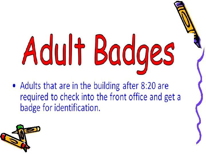 • Our day begins at 7: 50 am and ends at 3: 15 p. m. • Students are considered tardy if they are not in class by 8: 20 a. m. • If they are not in class at 9: 45 a. m. , they are marked absent. • Please send a note when your child has been absent. • Please send a note when your child changes transportation.