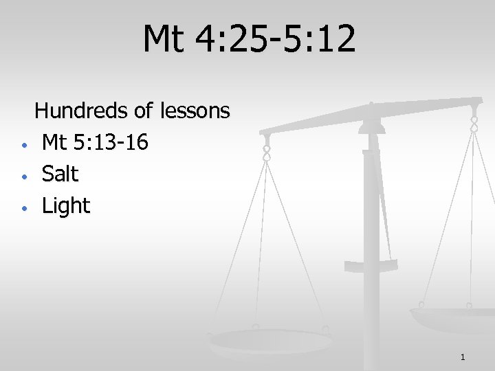 Mt 4: 25 -5: 12 Hundreds of lessons • Mt 5: 13 -16 • Salt • Light 1