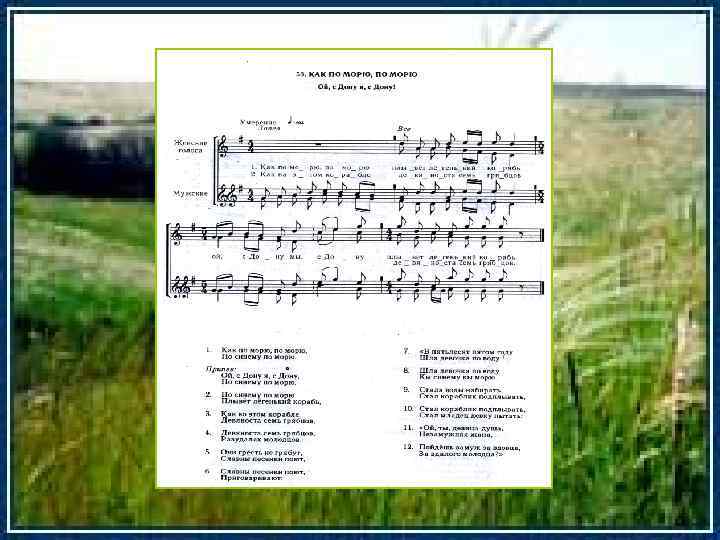 О казачьей песне Еще родится песня там, где сурова и долга зима. Люты степные бураны и пурги. Долги темные зимние ночи, где сердце жалуется на тяжелую борьбу с природой. Запевает песню человек от лютой тоски расставанья с родными, близкими и милыми; от скучной жизни в чужой, дальней стороне, от невозможности иначе, как песней – стонами тоскующей души, перекинуться мыслью с теми, кто где-то дома так же тоскует по тебе. Радостный хмель подвига и военной победы родит лихую песню героев. Так, пять веков тому назад родилась казачья песня. Разная, и по-разному звучит она в разных войсках. Их много, песен казачьих. Несколько тысяч. В этих песнях горела казачья душа. В них вспоминал казак свое прошлое. Воспевал героев. Вспоминал о милой, в них любил и под них плясал. П. Н. Краснов