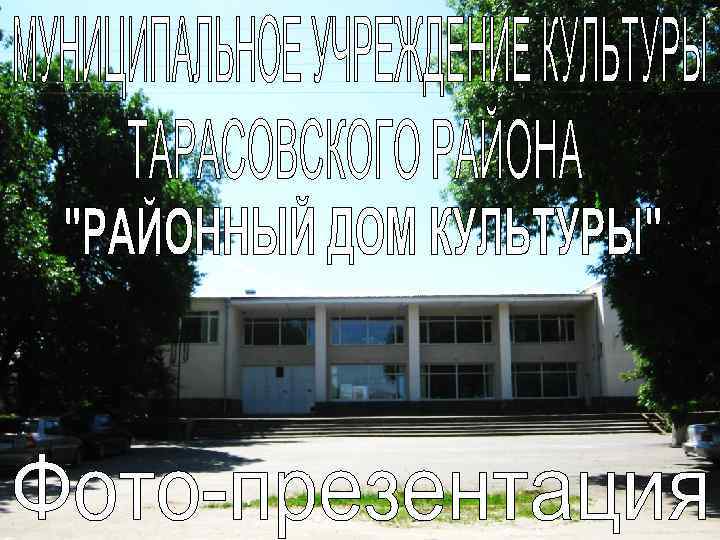 О нас: МУК ТР «РДК» является некоммерческой организацией. l. МУК ТР « РДК» - профессиональная команда, заслужившая, высоким качеством предлагаемых услуг, признание жителей Тарасовского района. l. Предметом деятельности является организация и проведение мероприятий по поддержке народного творчества и культуры ( в т. ч. проведение выставок и ярмарок). l. Мы представляем мероприятия в самых интересных и многообразных жанрах, разрабатываем эксклюзивные программы и предлагаем новые интересные проекты. l. Мы организуем для Вас праздник «под ключ» и сделаем Ваше мероприятие самым запоминающимся!