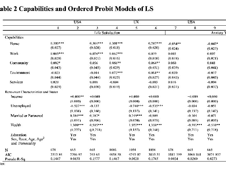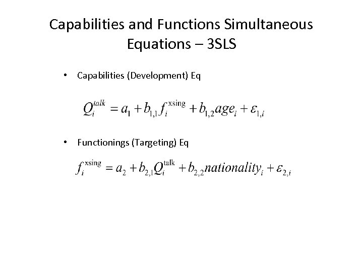 Capabilities and Functions Simultaneous Equations – 3 SLS • Capabilities (Development) Eq • Functionings (Targeting) Eq