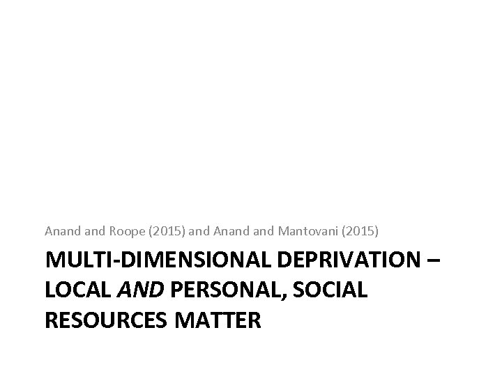 Anand Roope (2015) and Anand Mantovani (2015) MULTI-DIMENSIONAL DEPRIVATION – LOCAL AND PERSONAL, SOCIAL RESOURCES MATTER