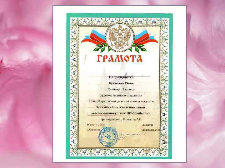 Последова Яна (2009 -2013) 14 лет Окончила художественное отделение с отличием